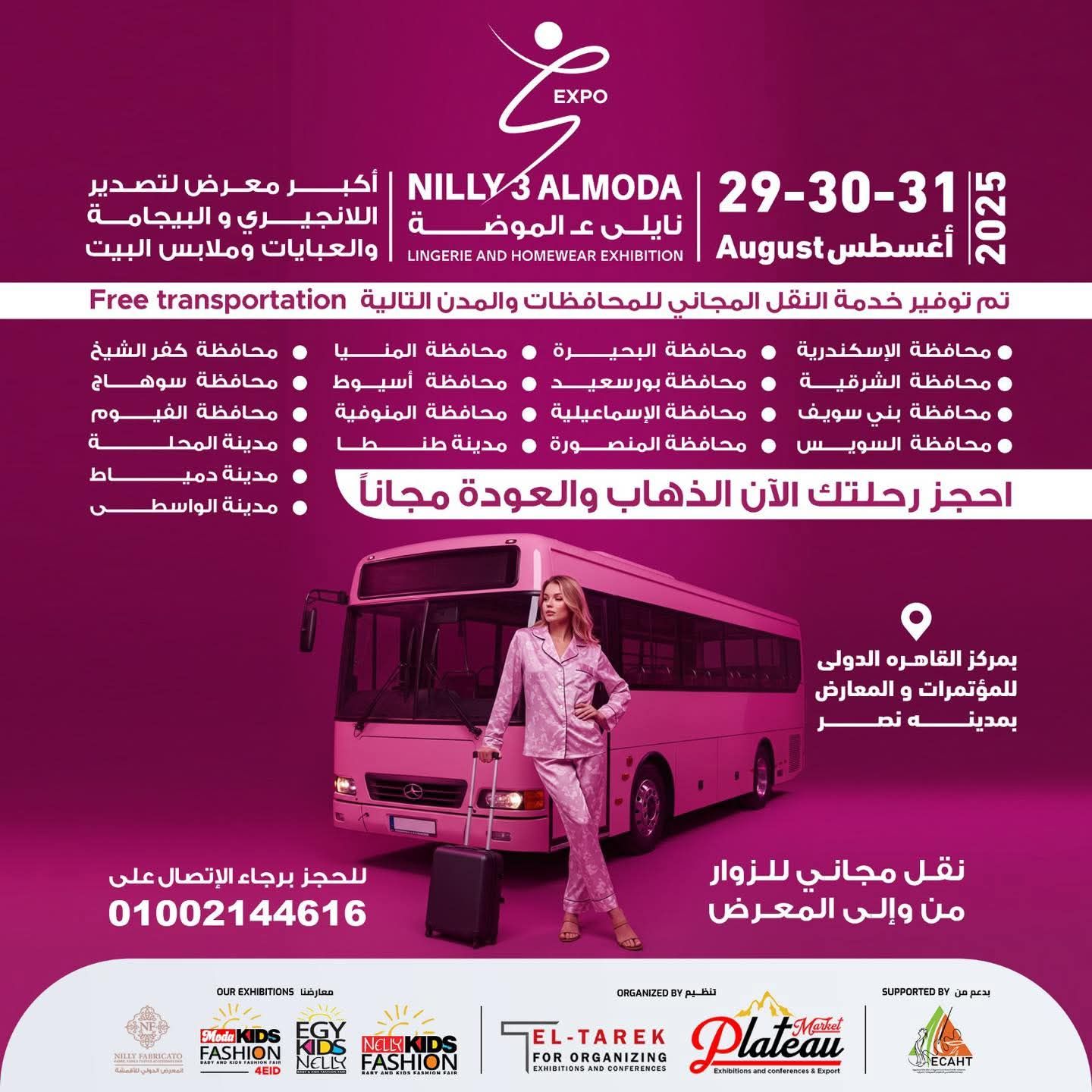 ![]() معرض " Nilly 3almoda" معرض موضة للملابس خلال الفترة من 29 حتى 31 أغسطس 2025 |