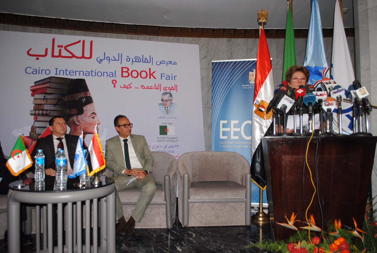 السيد الدكتور / هيثم الحاج رئيس مجلس إدارة الهيئة العامة للكتاب . و رئيس معرض القاهرة الدولي للكتاب . معالي نائب السفير / فريد دحمان .. نائب سفير دولة الجزائر بالقاهرة . السيد المستشار / عمار بن قيراط.. المستشار الثقافي لسفارة دولة الجزائر بالقاهرة . السادة / رجال الإعلام . السيدات والسادة الحضور الكرام ،،، يسعدني أن أرحب بكم في بيتكم .. " الهيئة المصرية العامة للمعارض والمؤتمرات " بمناسبة تدشين الدورة رقم (49) لمعرض القاهرة الدولي للكتاب المقرر انعقاده خلال الفترة من 27 يناير وحتى 10فبراير 2018 بأرض المعارض .. وأنقل لحضراتكم تحيات معالي وزير التجارة والصناعة واهتمامه الشديد بالمعرض في إطار التعاون مع وزارة الثاقفة . تأتي فعاليات المعرض هذا العام في جو يسوده الألفة والتعاون بين الهيئة المصرية العامة للمعارض والمؤتمرات و الهيئة العامة للكتاب الموقرة والتي أصبحت نافذتنا التي نعتز بها على عالم الثقافة والفنون ، من منطلق إيمان الهيئة المصرية العامة للمعارض و المؤتمرات الشديد بأهمية الكتاب والكلمة المقروءة التي ستظل تاريخا وشاهدا على كل عصر على الرغم من التطور الذي تشهده وسائل الاتصال الإلكترونية الحديثة وانتشار وسائل التواصل الاجتماعي و وسائل الاتصال العصرية المسموعة منها والمرئية يعد معرض القاهرة الدولي للكتاب مكانا للالتقاء بين كل الاتجاهات الفكرية الجادة ليس على النطاق المصري فحسب، بل يمتد ليشمل الصعيد العربي، حيث يشارك في المعرض كل عام آلاف الناشرين الذين ينتمون إلى عشرات الدول العربية والأجنبية إضافة إلى مشاركة المنظمات العربية والدولية والعديد من الوزارات والأجهزة الحكومية الأخرى في مصر والتي تفخر الهيئة المصرية العامة للمعارض والمؤتمرات باستضافتهم جميعا كل عام منذ انطلاق المعرض لأول مرة بأرض المعارض بالجزيرة عام 1969م وانتقاله معها إلى أرض المعارض بمدينة نصر، لتصبح الهيئة المصرية العامة للمعارض والمؤتمرات شاهداعلى التاريخ العظيم لمعرض القاهرة الدولي للكتاب وما حققه من تقدم دولي . وفي الختام أتقدم بخالص الشكر والتقدير لجميع زملائي العاملين بالهيئة المصرية العامة للمعارض والمؤتمرات الذين قدموا كل العون لزملائهم بالهيئة العامة للكتاب لإقامة هذا المعرض الدولي الهام ، كما أكرر شكري لجميع الحضور متمنية للجميع النجاح والسداد ، والله ولي التوفيق . والسلام عليكم ورحمة الله وبركاته،،،