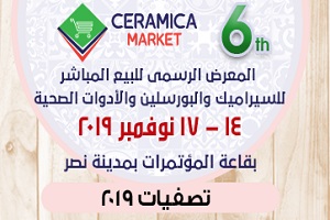 افتتح بمركز القاهرة الدولي للمؤتمرات الدورة السادسة معرض سيراميكا ماركت بتنظيم من شركة جرين لاند لتسويق المعارض والذي يقام خلال الفترة من ١٤ – ١٧ نوفمبر ٢٠١٩ وذلك على مساحة عرض ٧٥٥٠ م٢ . |