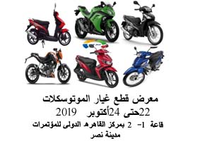 المعرض الدولى لقطع غيار الموتوسيكلات شهدا مركز القاهرة الدولى للمؤتمرات افتتاح الدورة الاولة للمعرض الدولى لقطع غيار الموتوسيكلات والمقام خلال الفترة من 22-24/ اكتوبر الجارى بصالتيى (1.2) بالمركز وذلك بتنظيم من شركة جلوبال لتنظيم المعارض |